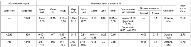 Допустимое количество примесей определяется таблицей химического состава ГОСТ 4784-97.